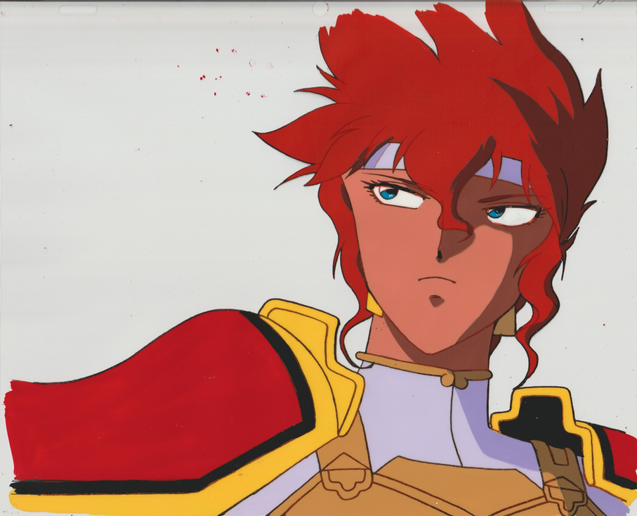 From the 1994 space opera Ginga Sengoku Gunyuuden Rai (Thunder Jet). This piece features the protagonist Rai, a daring young commander in a futuristic "Warring States" period of the galaxy. The production cel captures his fierce determination and iconic red-haired design, while the accompanying genga/douga showcases the intricate, sharp linework used to bring this high-stakes military drama to life.