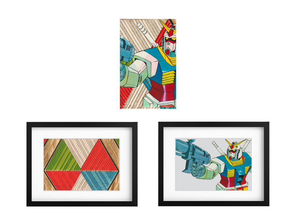 Born in the same era of Japanese creative abundance, the vibrant primary colors of the RX-78-2 resonate with the structural weaving of the Kyoto silk.